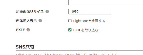 上記の機能に合わせ、EXIF付きの写真を指定した際に自動的にその内容を画像のコメントとして取り込むオプションを追加しました。