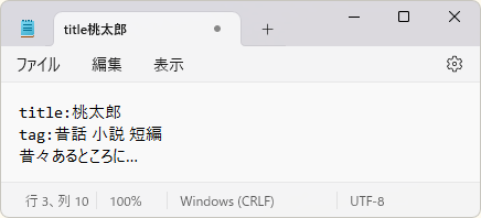 また、この際「title:」から始まる行と「tag:」から始まる行を用意しておくことでタイトルとタグにも取り込みができます。